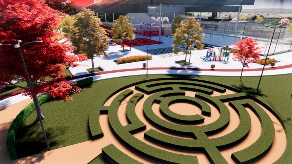 A estrutura vai contar com concha acústica (com 5.000 m² de cobertura), campo society, quadras poliesportivas (aproximadamente 800 m² cada), espelho d’água, playground, pista de caminhada, ciclismo e corrida, praça de atividades, cancha de bocha, bloco de atividades para acolher aulas de balé, dança, tênis de mesa e karatê (756 m²), campo de futebol, quadra de areia, quiosques para churrasco, labirinto verde, parede de escalada, pista de skate, praça da fonte, praça para atividades da 3ª idade, duchas, academia ao ar livre e lanchonetes, bloco de apoio (968 m²) com 8 vestiários, sanitários, ambulatório, salas multiuso, sala de capacitação, arquibancadas e terraço, além de estacionamento para 190 vagas.